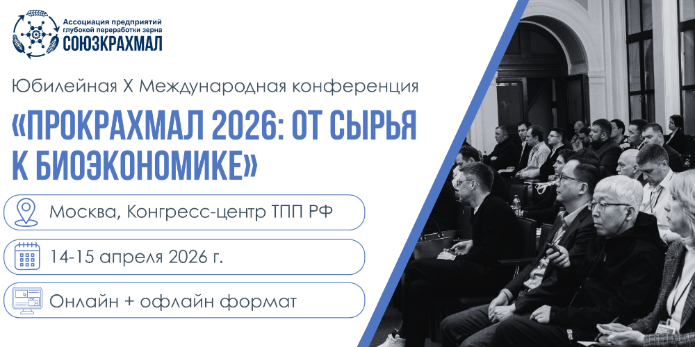 Читать далееX Международная конференция «ПроКрахмал 2026: от сырья к биоэкономике» пройдет 14-15 апреля 2026 года в Конгресс-центре ТПП РФ
